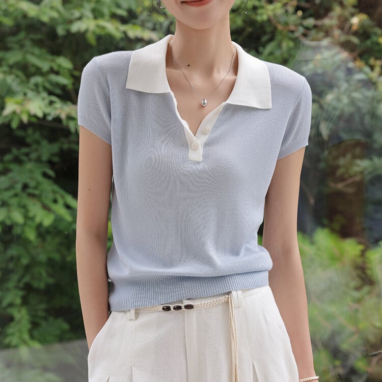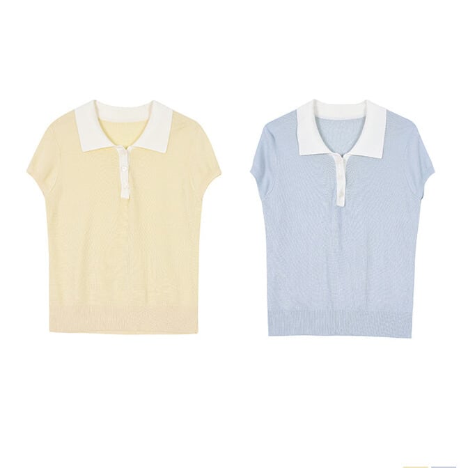 半袖 シャツカラー ニットポロシャツ 2col H11201