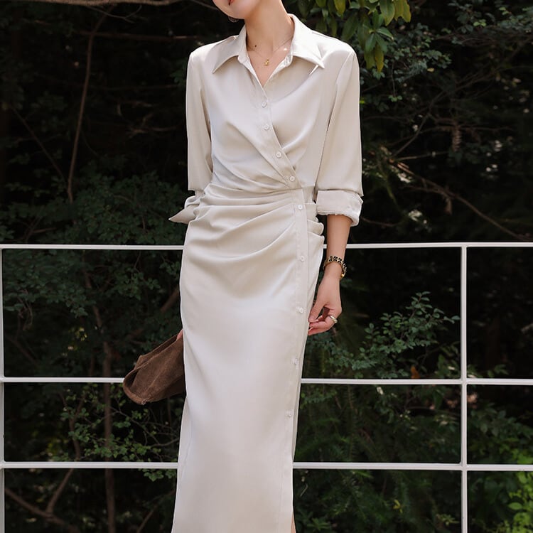 上品なオフホワイトのシャツワンピースです。