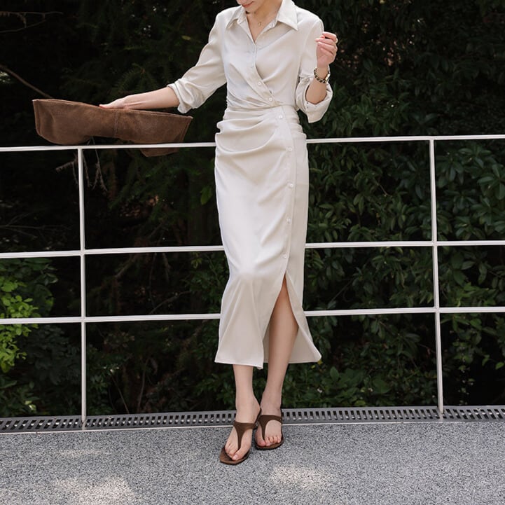 スリット入りシャーリングシャツワンピース 1col H10623