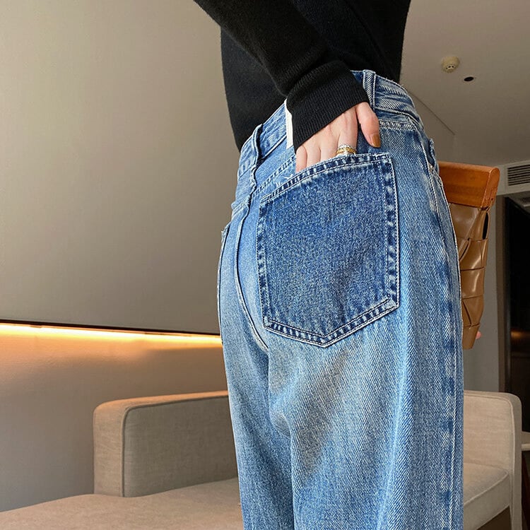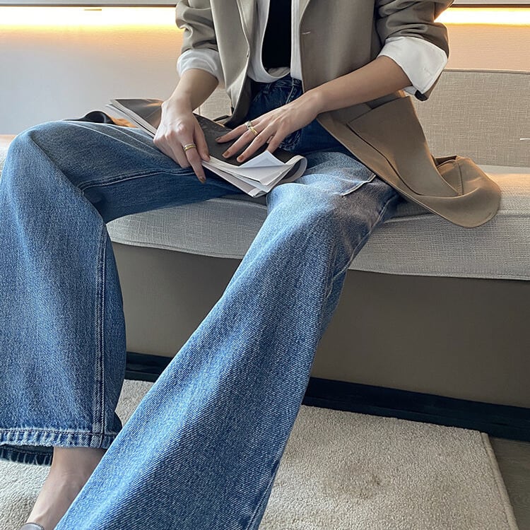 シンプルなデザインで、どんなトップスにも合わせやすいストレートデニム。