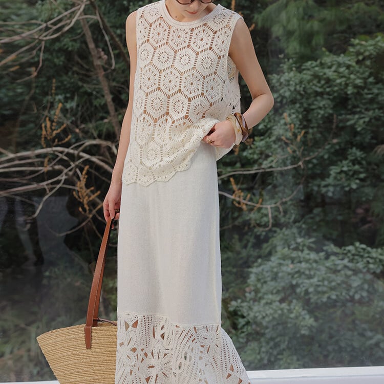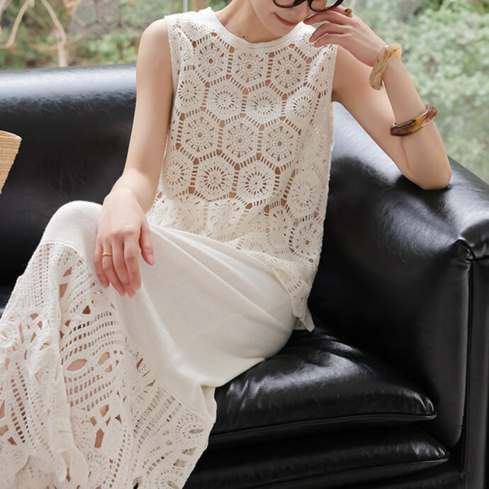 ※『デザイン編みロングスカート 1col H10865』とセットアップとして着用いただけます。