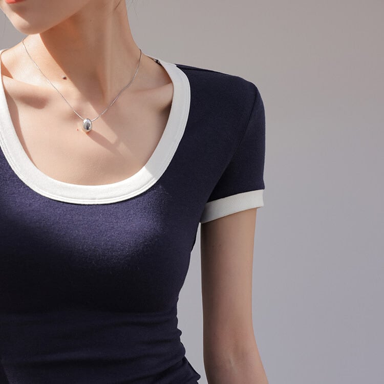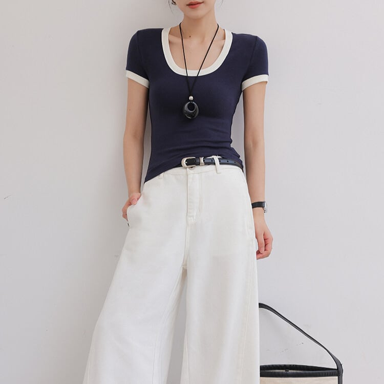 配色トリム スリムフィット Tシャツ 3col H11216