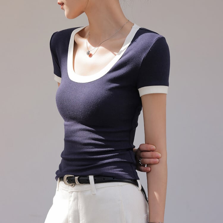 配色トリムがアクセントになった、スリムフィットTシャツ。