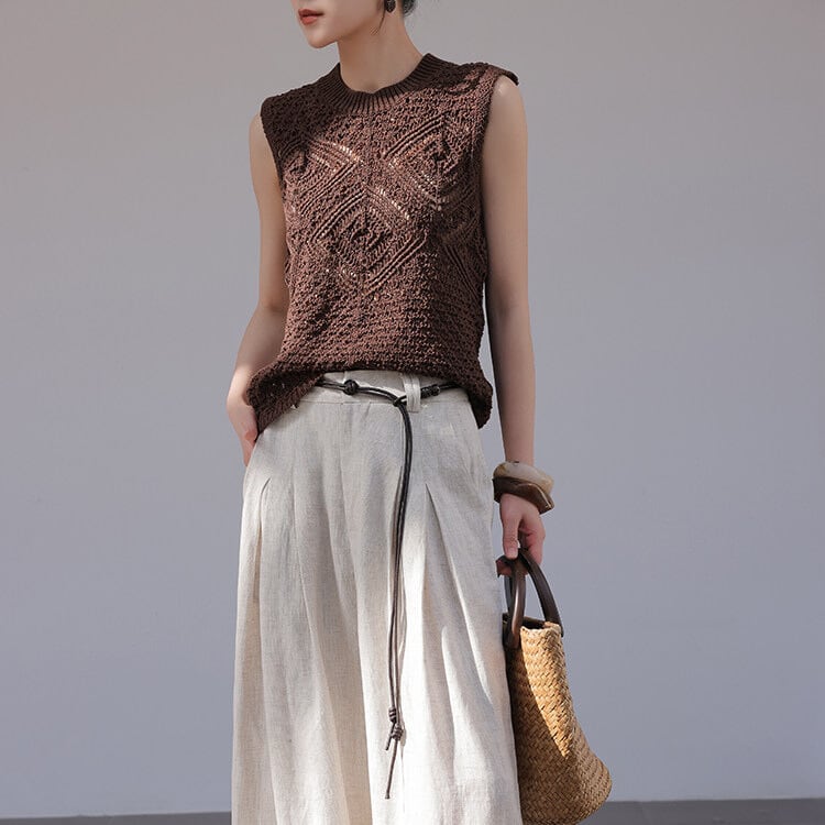 透かし編み ノースリーブ ニットトップス 2col H11218