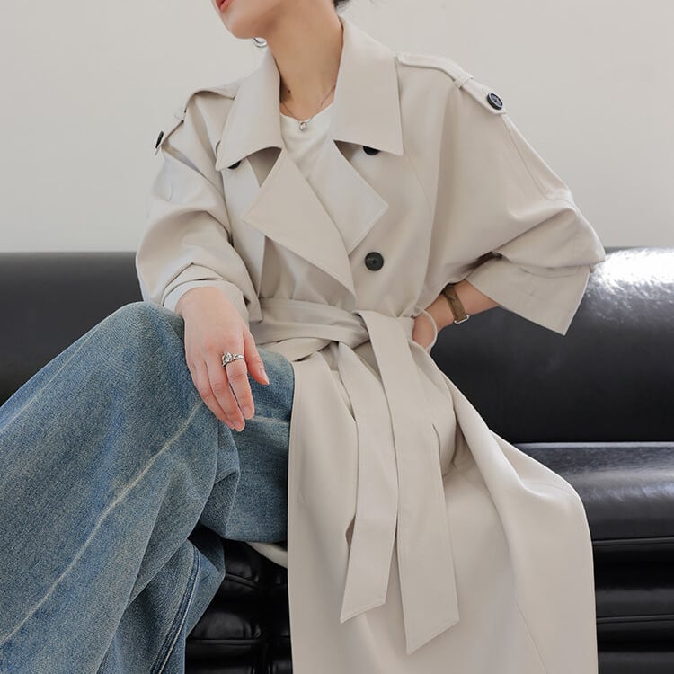 ダブルブレスト ベルト付き トレンチコート 1col H13010