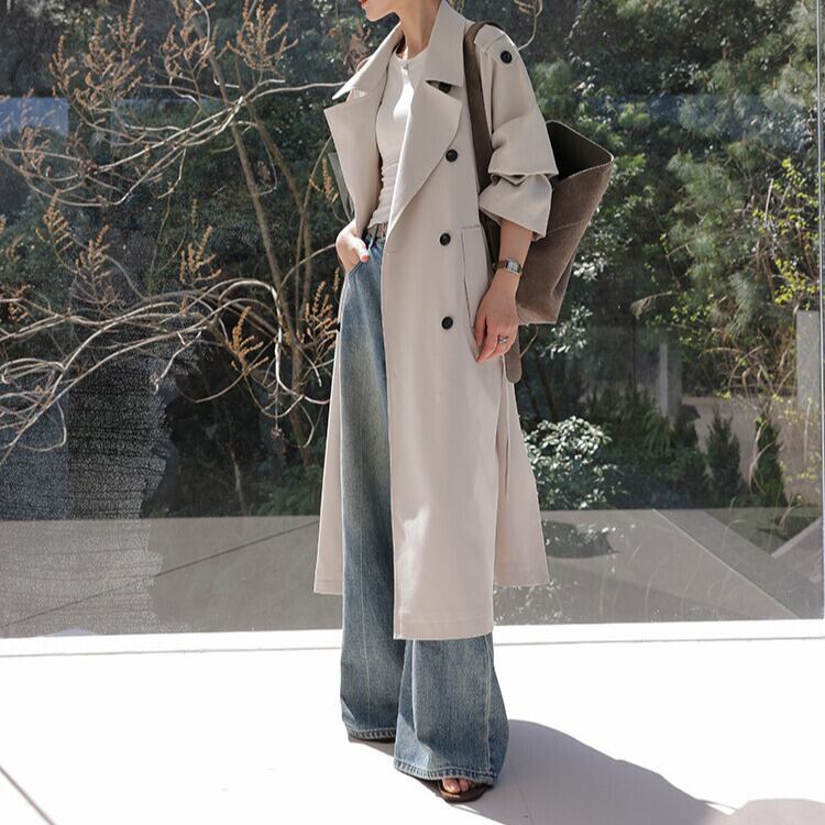 ※着用コートは『ダブルブレスト ベルト付き トレンチコート 1col H01390』
