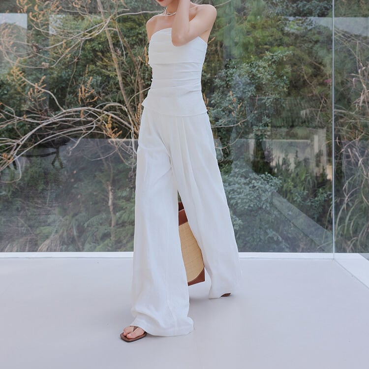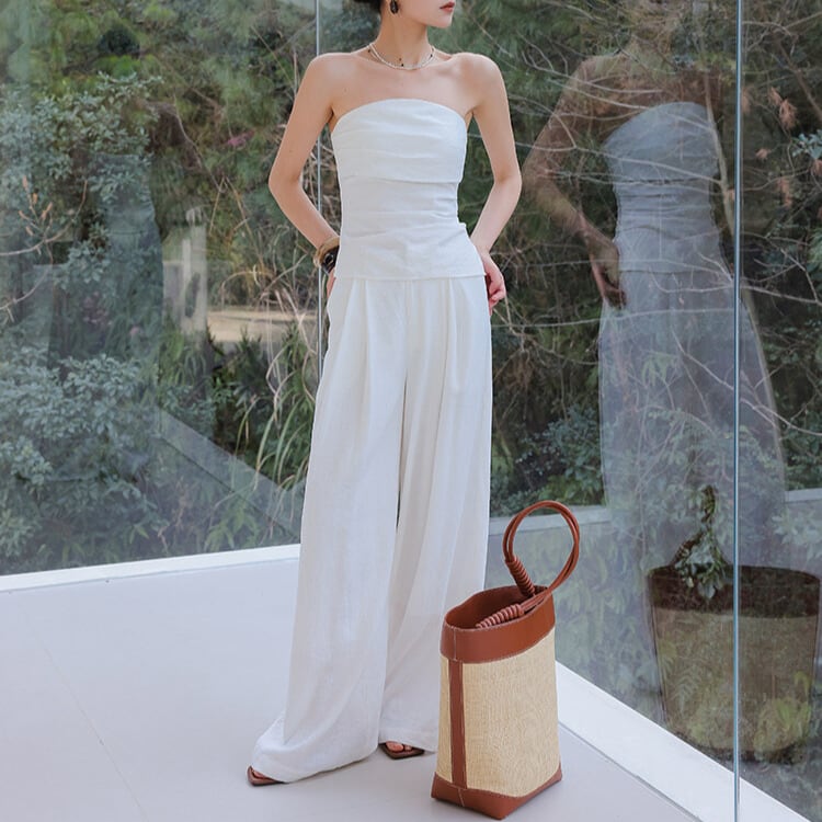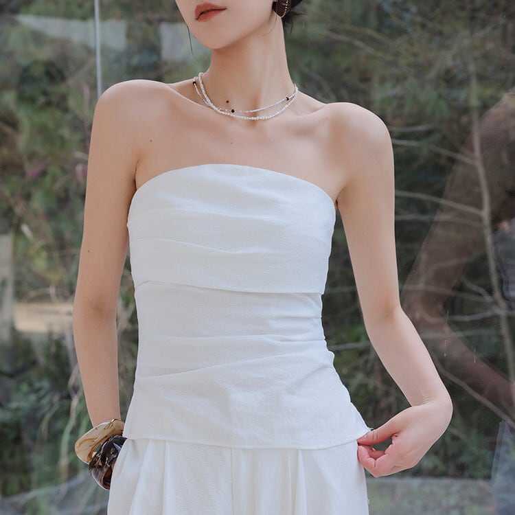 シンプルながらも洗練された印象のチューブトップ。