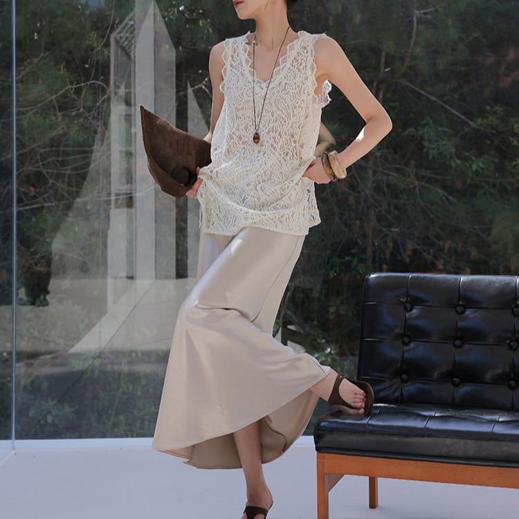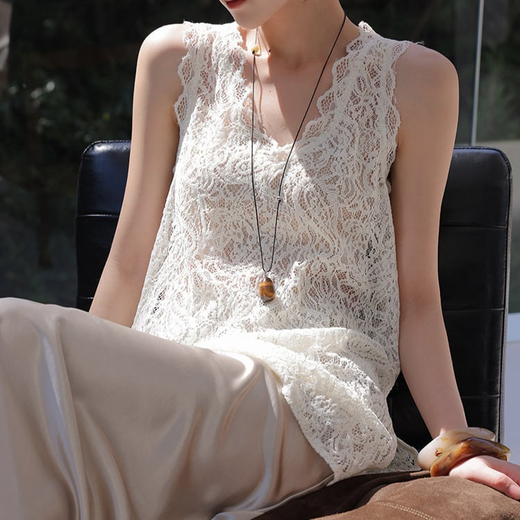 繊細なレースが特徴のノースリーブカットソー。