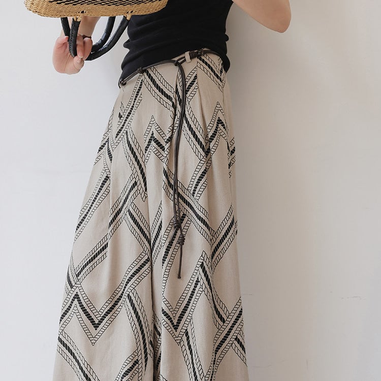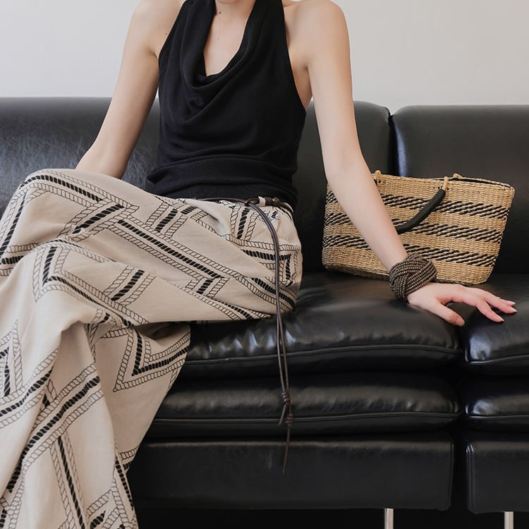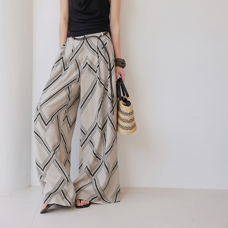 総柄が目を引く、リラックス感のあるワイドパンツ。