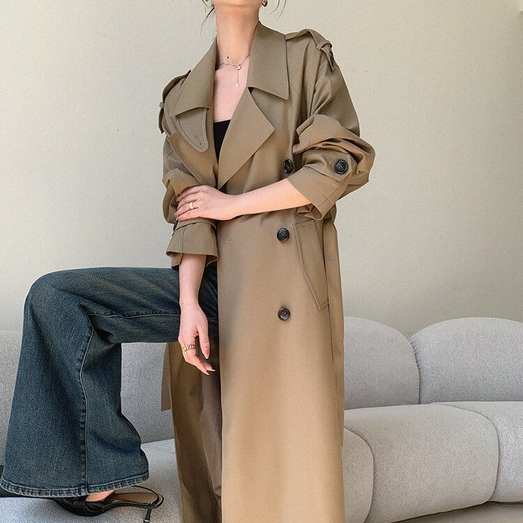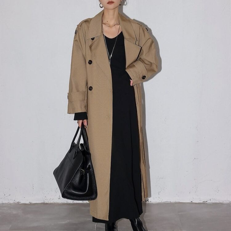 ダブルブレスト ベルト付き ミモレ丈 トレンチコート 1col H13012