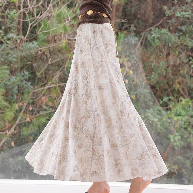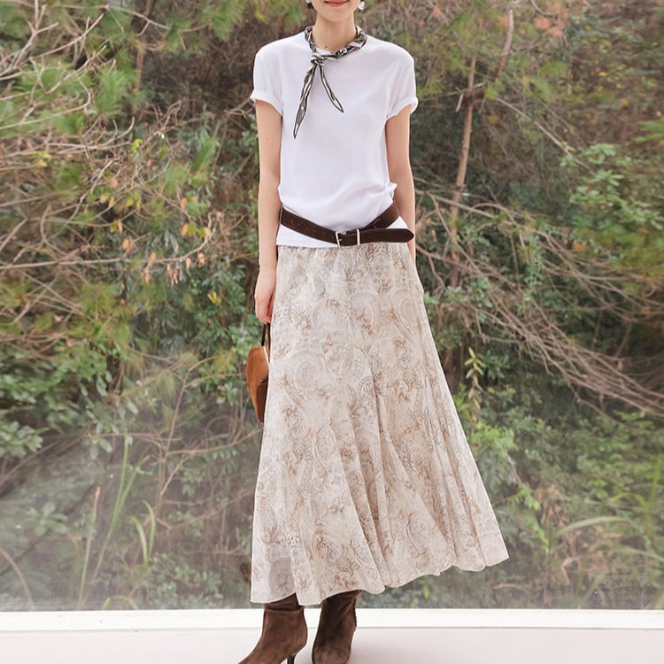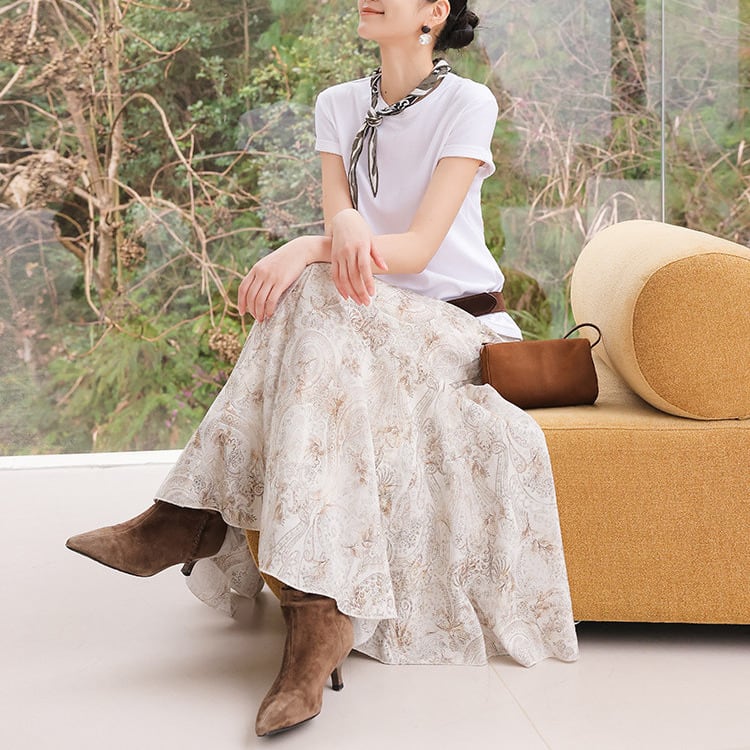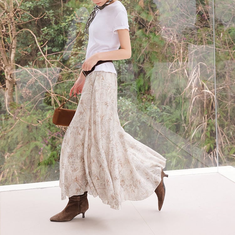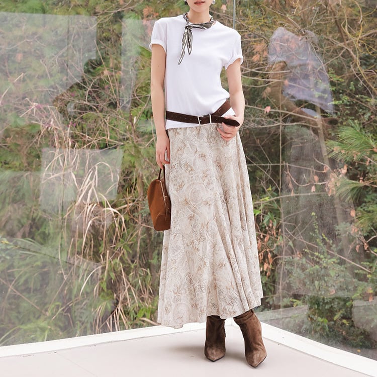 フレア マキシ丈 柄 ロングスカート 1col H10878