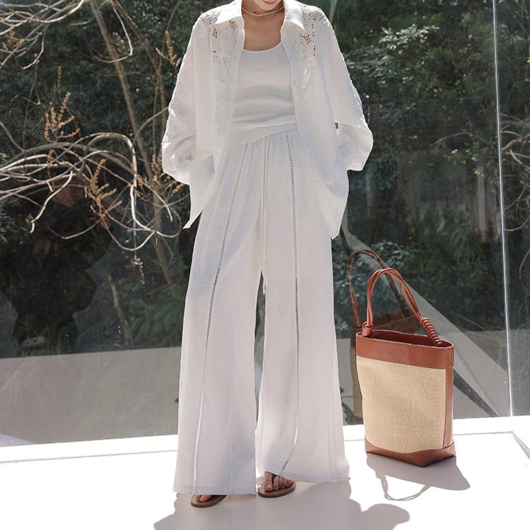 ワイドレッグなので、タイトなトップスと合わせるとバランスの良いスタイリングに。