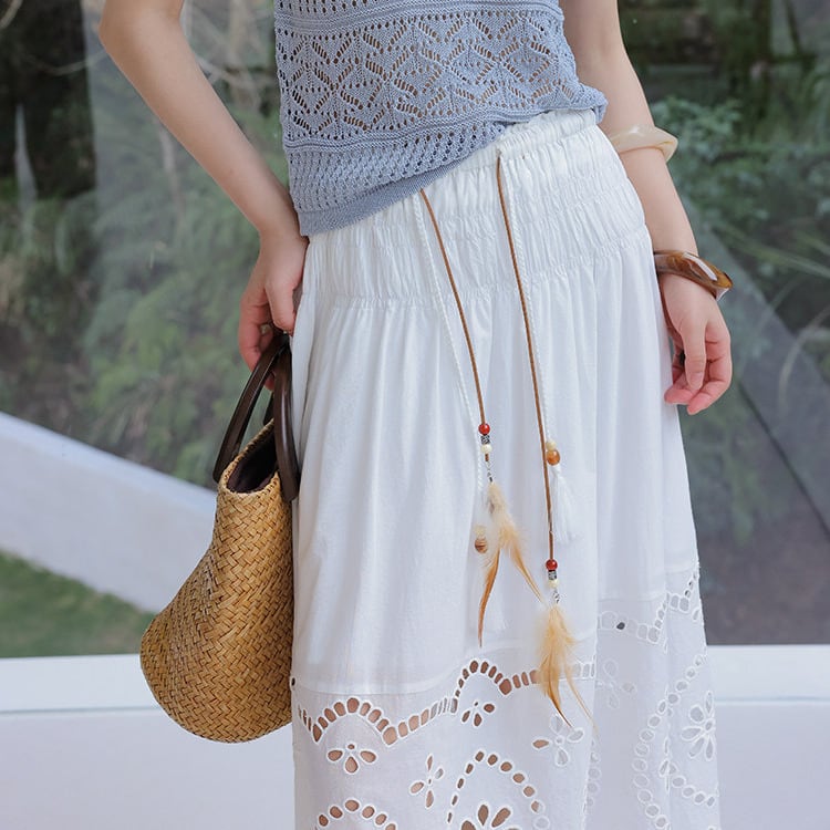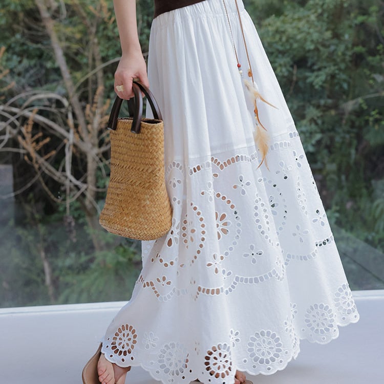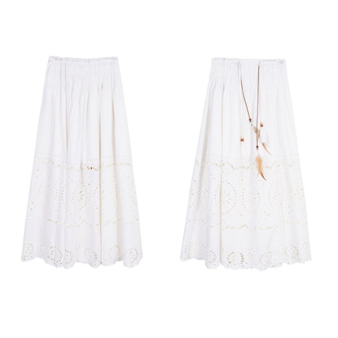 軽やかなコットンレースが印象的な、フレアロングスカート。