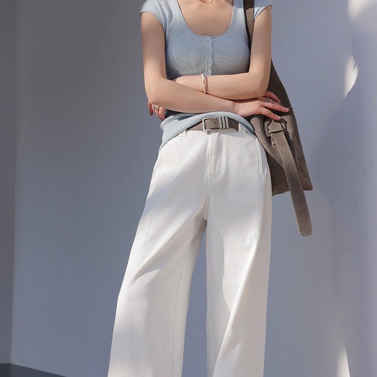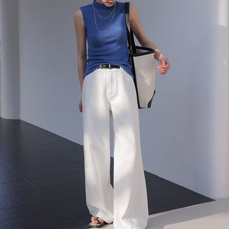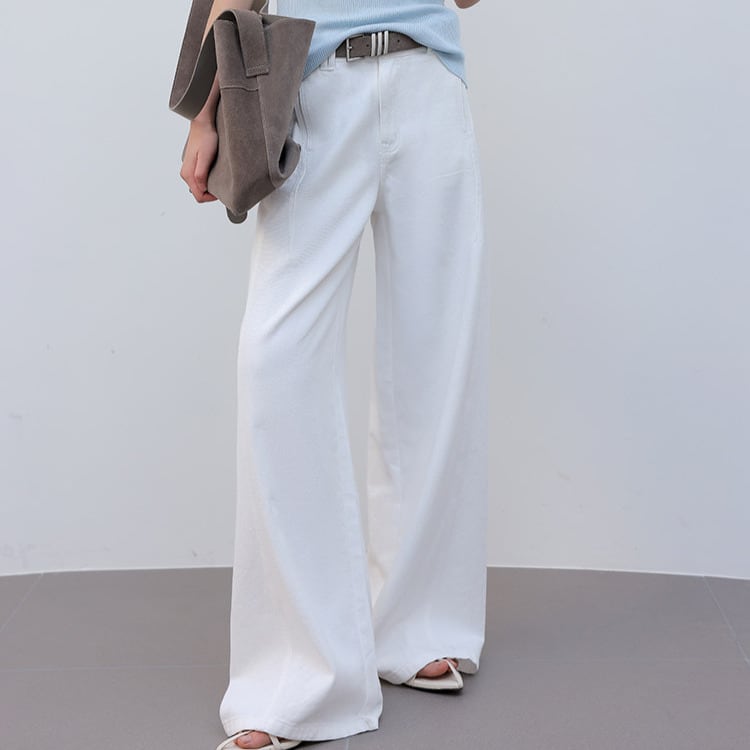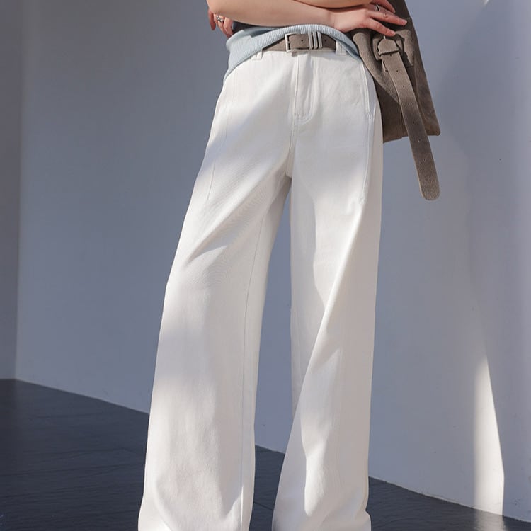 クリーンなホワイトカラーが印象的なフルレングスパンツ。